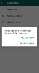 4. Next, tap on the “ include media ” option if you want to export photos and videos from WhatsApp otherwise only messages will be exported.