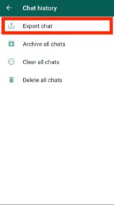 2. Now you can choose to export any particular WhatsApp chat or all the chats