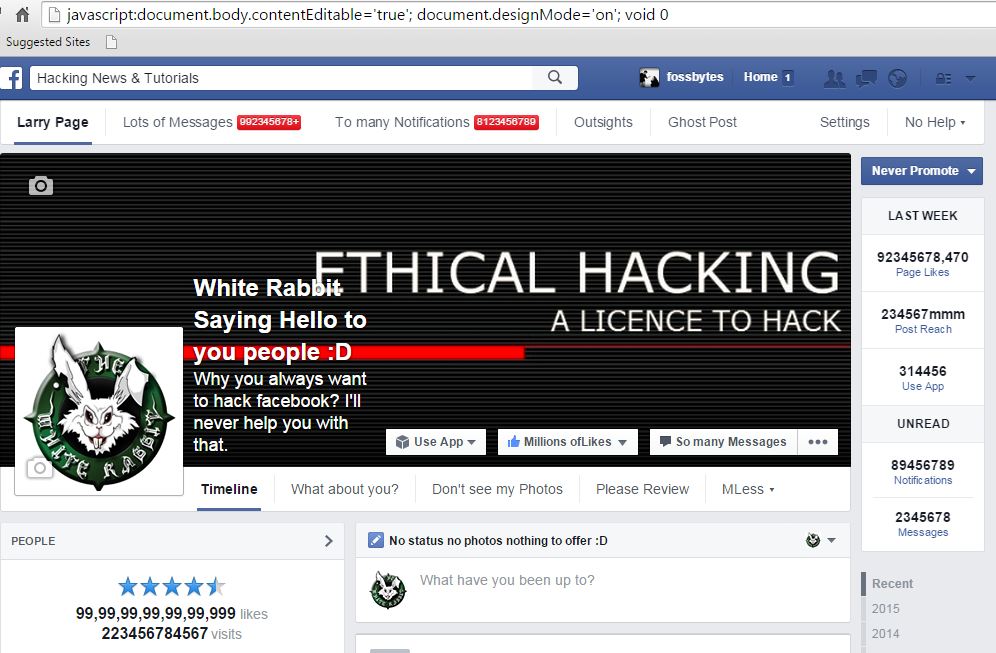 See how I changed my page’s name, how I manipulated the likes, status bar, and everything. It’s kind of awesome.