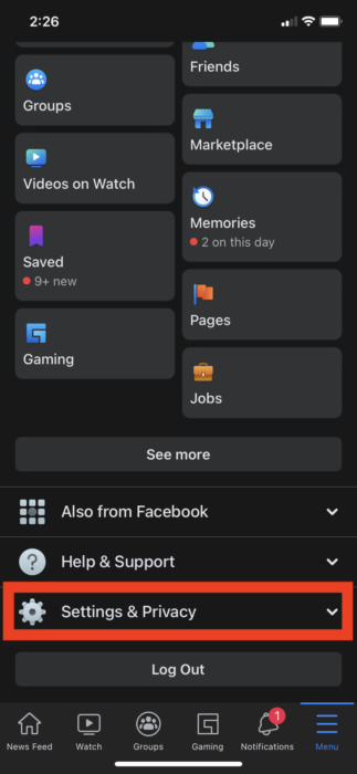 - Tap on the hamburger iconed Menu option and go to Settings & Privacy