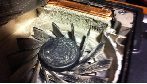 Dust is the mother of all overheating problems and your enemy number one. Dust and debris clog the air vents, therefore, impeding the air flow. Accumulation of dust and lint over the fan causes it to work harder and become noisy as a result. A layer of this filth which acts as an insulator, covering other heat generating parts such as the RAM and the Hard Disk can also be a cause of overheating.