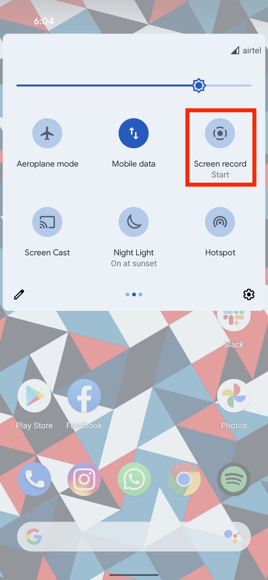 If your device is updated to the latest Android version i.e Android 11, you can use the default Android screen recorder to capture the screen. Here’s how to to do it —
