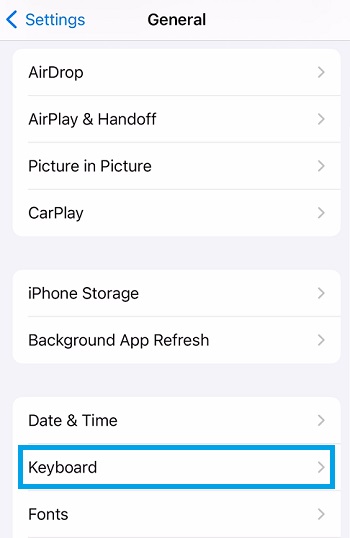 3. Tap on “Keyboard.”
