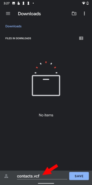 Next, type the name of the VCF file which will be saved to the Downloads folder.