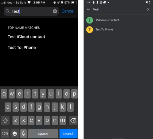 To test whether the real-time sync works without any issues or not, when I create a new contact on my Android device (Google Contacts), it appears on my iPhone in no time.
