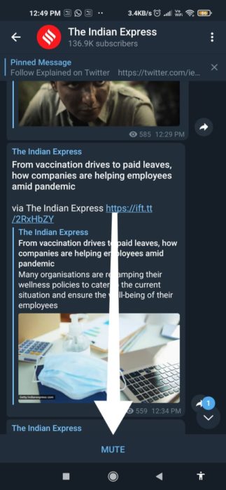 4. Note- You might want to mute the channel if you don’t want constant notifications. The MUTE option is right where the JOIN option used to be.