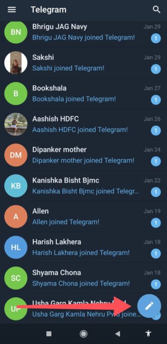 1. Open the Telegram app and press the pencil icon on the bottom right corner.
