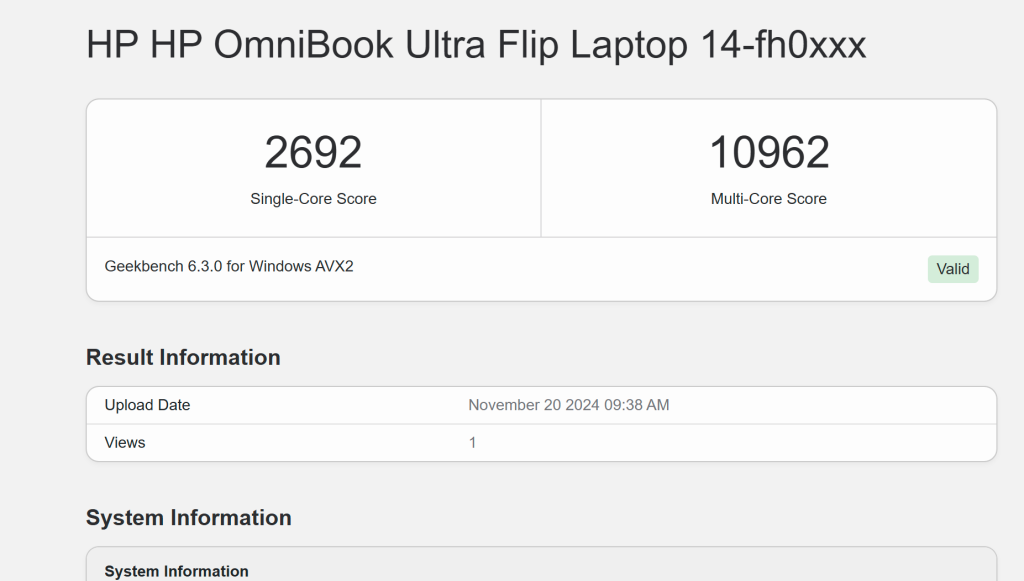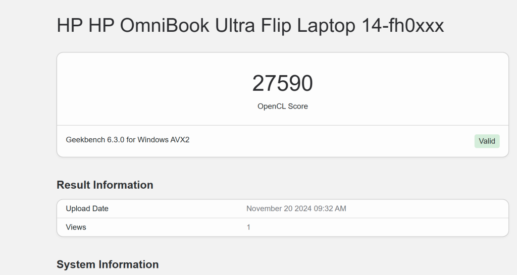 On the GPU side of things, the OmniBook Ultra Flip achieved 27,590 in Geekbench’s GPU test and 3,928 in 3DMark’s Time Spy test.