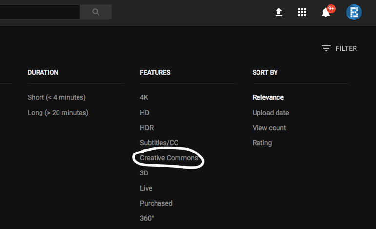 Then there are the videos with Creative Commons license which could be downloaded, edited, or reused by you. Let’s suppose I’m looking for some panda video clips on YouTube and I wish to use them in another video. To do so, I’ll have to perform a search and select the Creative Commons license from the filter menu. You can also see this attribution just below a video.