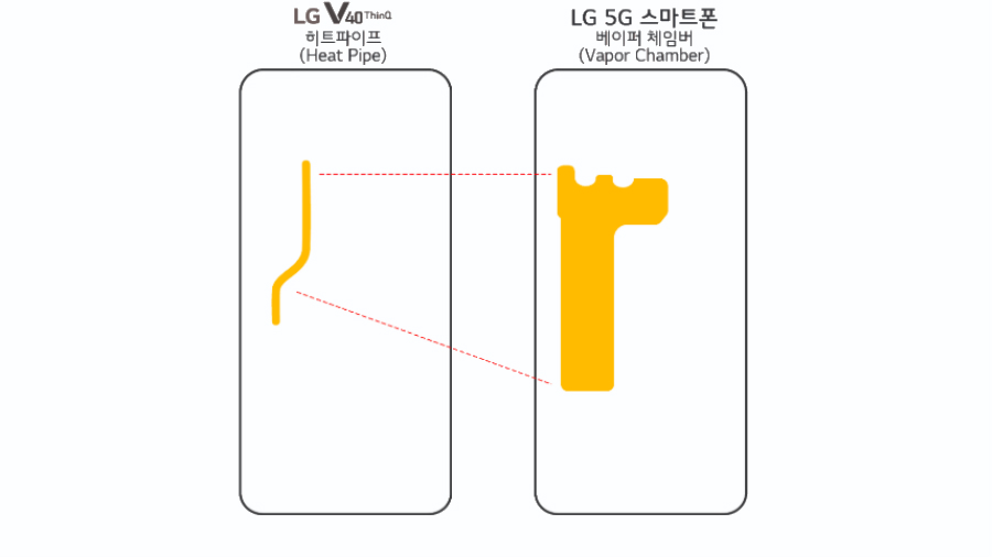 The new heat pipe has 2.7 times more surface area than the LG V40 ThinQ which will lead to faster heat absorption and cooling effect. Additionally, the smartphone will come with 4,000mAh battery for increased usage with 5G.