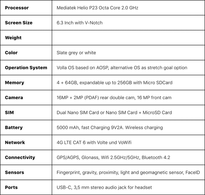 Volla Phone Specifications