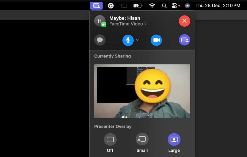 Additionally, to enhance screen sharing, Apple has introduced the Presenter Overlay feature, integrating the presenter’s video feed onto shared content. Users can choose between small or large overlays based on their preferences. To enable: