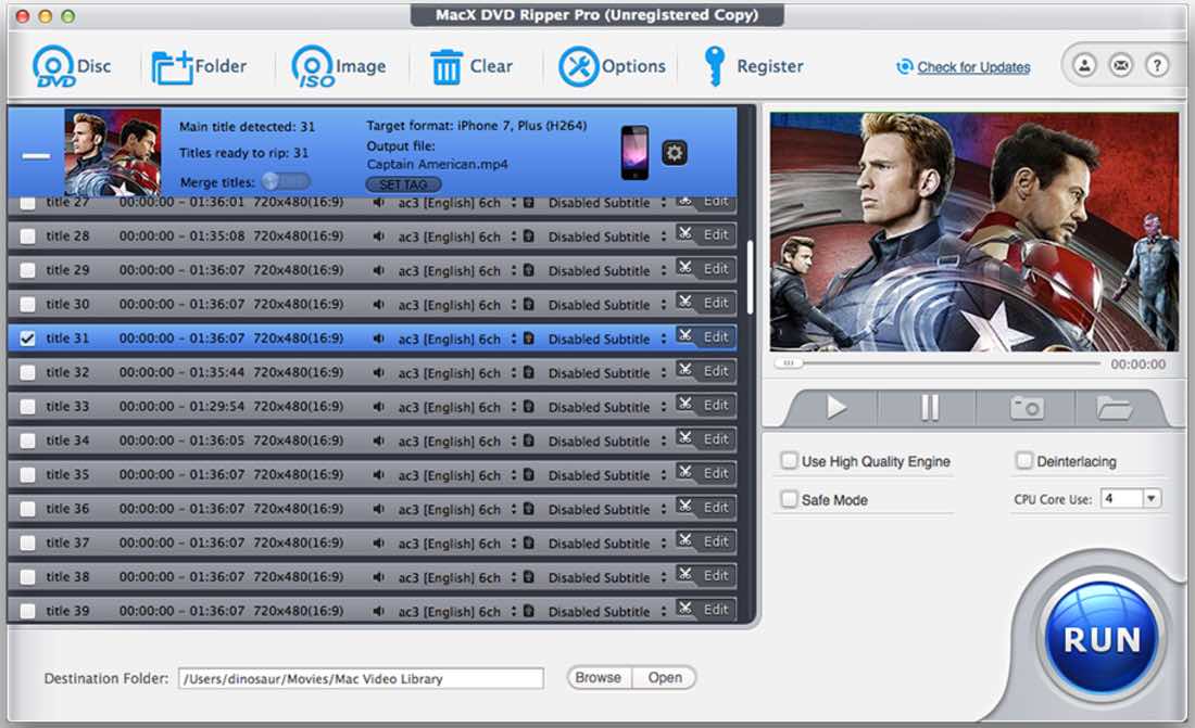 One of the biggest benefits of this program is precisely indicated in the title of this section : convert DVD to MP4 vi deo for iPhone iPad devices to watch it anywhere and anytime. Though various DVD ripping tools can do so, MacX DVD Ripper makes it simple.