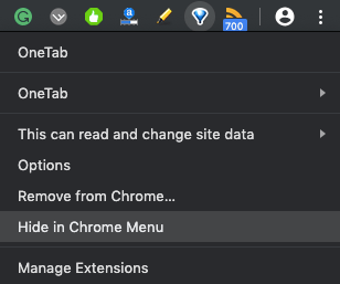 Hide Chrome extensions from the menu bar