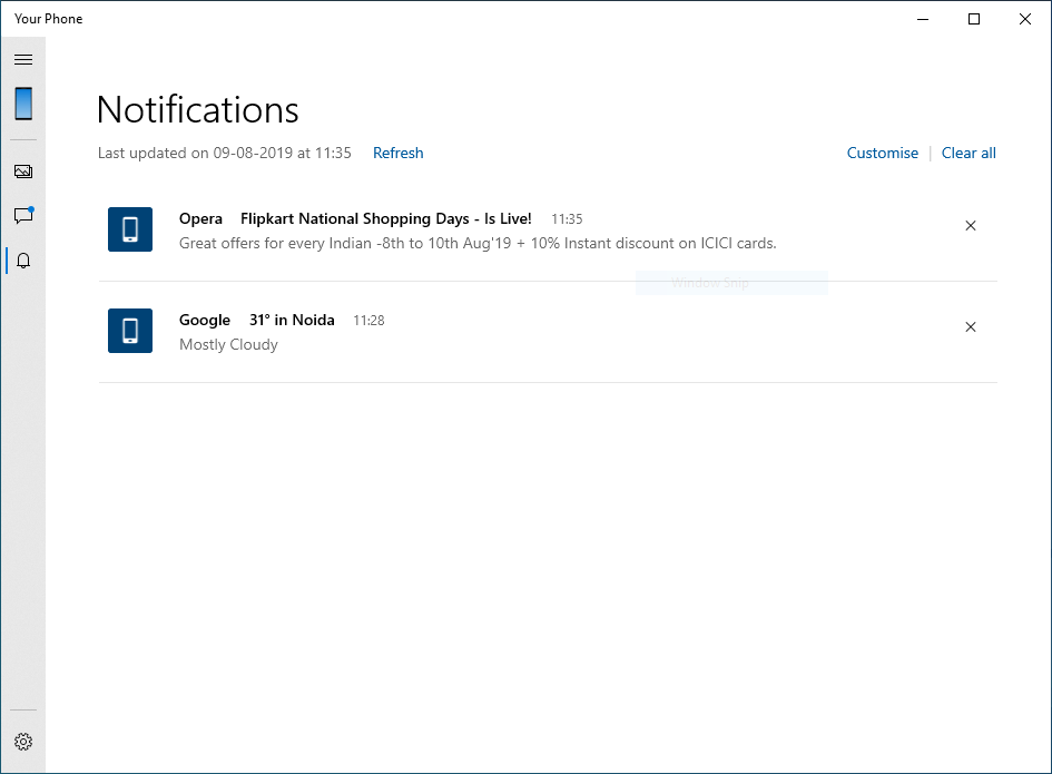 So when you click a photo on your phone, it quickly pops-up on the Your Phone app from where you can copy it on your PC. Also, when you dismiss notifications in the Your Phone app, they also get dismissed on your phone.