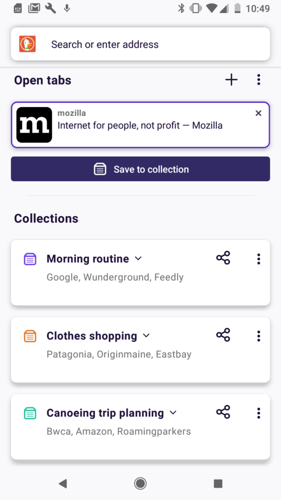 Firefox Preview has a minimalist user interface, support for Collections (to save, organize and share sites) and a new way of bookmarking pages. It has Firefox’s tracking protection, which remains on by default.