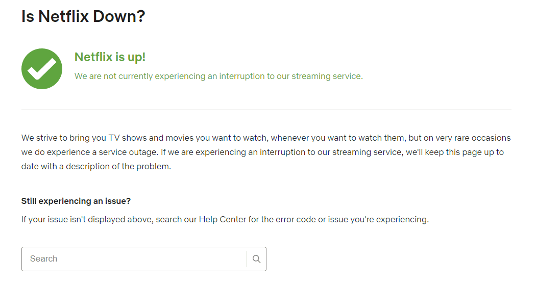Like many other companies, Netflix has also set up a dedicated web page that displays the service status of its streaming service. So, when you experience any problems, just take a quick look at the Netflix server status page for any issues.