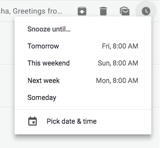 You can finally snooze your emails Like Google’s ‘Inbox’ and make them disappear for the time being. Just select the Snooze option (that looks like a clock) and have them redelivered to you at a suitable date or time when you can reply to it. This feature will save you from the regret of not replying to an important mail.