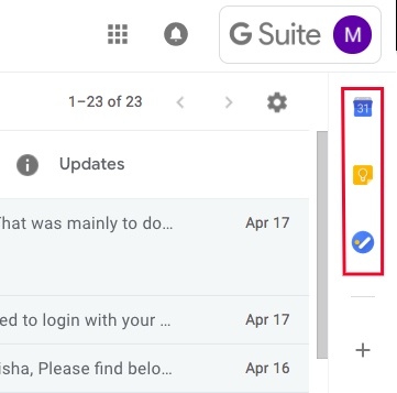 The new Gmail update brings a brand new sidebar on the right-hand side where you can tap on the tiny icons to pull up your Google Calendar, add important notes in Keep, assign Tasks or access another Gmail add-ons that you have installed.