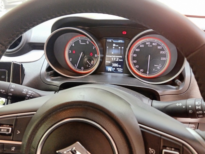 Swift gets some technological upgrades with a revised instrument cluster which is not digital but has a new 10.67cm multi-information colored TFT display. It gets you all of the basic information about the car via the steering controls. It also has a 17.78 cm Smartplay Studio infotainment system while now it has smartphone, vehicle, and cloud-based services.
