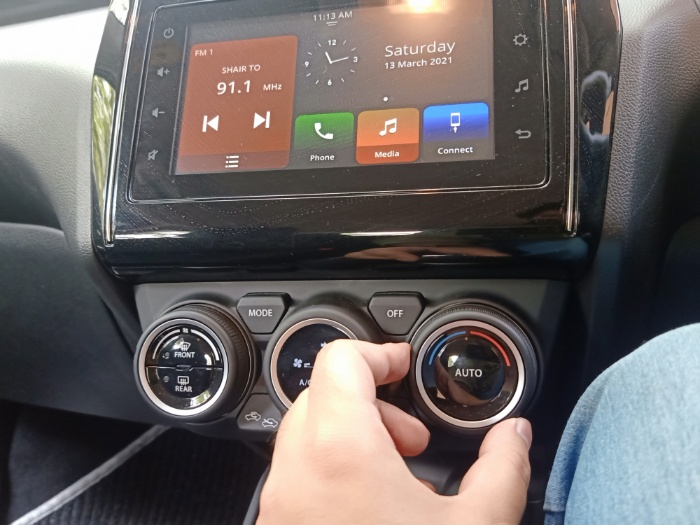 The interior is a sporty all-black affair and that is nice since it complements the design. The build quality is decent and some of the bits like the round knobs for the air-con controls are also a nice touch plus the flat bottomed steering wheel is also of good quality. It is the best-built Maruti but some bits like the door pads are a bit compromised in terms of quality.