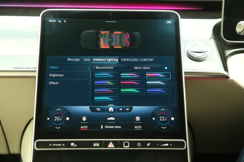 A good user-friendly touch screen operates all the climate/massage/media functions back to the central functions. You can also use the voice command system. Do note that the desired settings can be stored in profiles, which can also be secured by a fingerprint scanner!