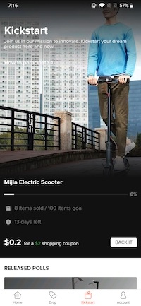 - The Kickstart section has all the products under the kickstarted initiative, and backing such products will provide users with various shopping coupons.