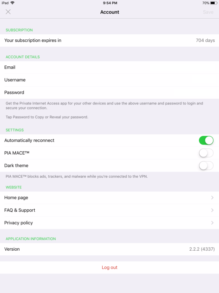 Getting hands on the PIA VPN iOS app on an iPad was as smooth as it was on Android and Windows. The app is visually appealing, and for a moment a user might forget that PIA is a cheap VPN service. But it seems to cut down on the number of settings and features.
