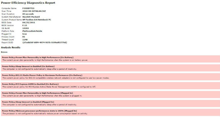 Check battery health and generate Energy Report In Windows using POWERCFG command