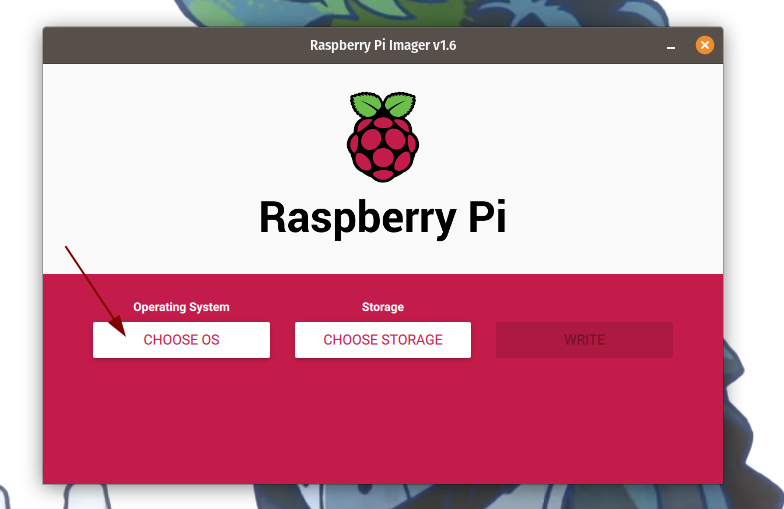 - Open the Raspberry Pi Imager tool and click on Choose OS .
