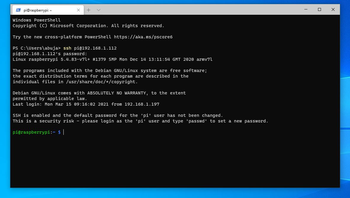 All that’s remaining is to connect to Pi via SSH. After starting the Pi, give it two to five minutes to boot up.
