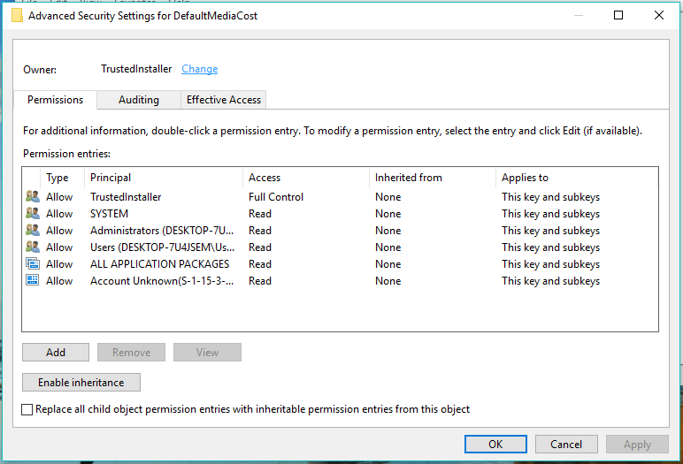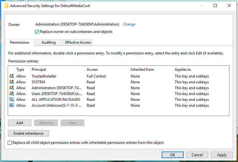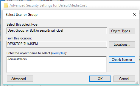 Now, in Advanced Security Settings for DefaultMediaCost, tick the