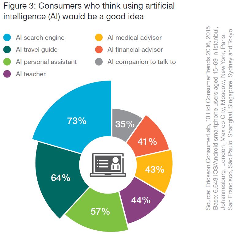 The study reveals that 50% of users believe that they’ll be able to talk to their household appliances. This new way to interact with devices would be possible with an AI interface.