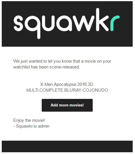 F or pirates, especially newbies, keeping track of new movie leaks that too in high quality is a pain in the ass. The reason can be their lack of experience in finding a reliable source. Well, one website has popped up to help them out.Squawkr sends email notifications (also provides PushBullet and Pushover notifications) whenever a new movie leaks online. In order to do so, you need to create an account on the website and add the name of the movie on it. Squawkr then keeps an eye on the movie title and alerts you when it comes online. It takes the help of the PreDB database which enlists thousands of releases.