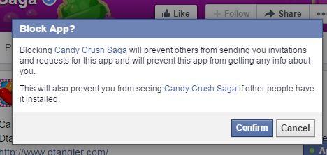 - Click the “Confirm” button to block all requests and invitations from Candy Crush Saga