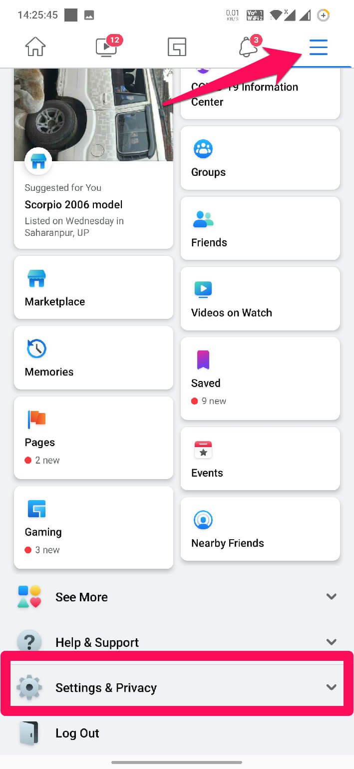 Launch the Facebook app, click on the hamburger icon in the top right corner, and click on “Settings & Privacy.”
