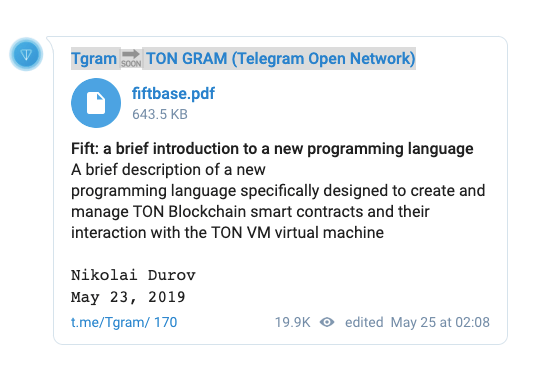 The document shared in the official post offers an overview of Fift — including the basics and TON-specific operations of the language.