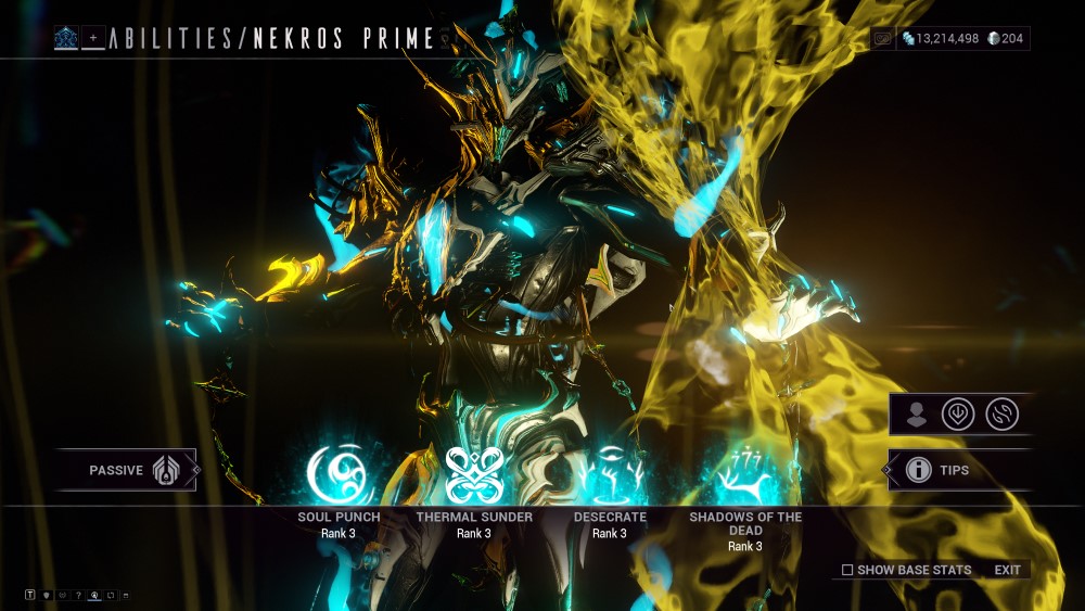 His Despoil augment even removes the energy requirement from the Desecrate ability. If the enemy is cut into two parts, their body parts are treated as distinct corpses, allowing for even more loot. It is recommended that players use a Slash-based weapon to dismember their enemies when using Nekros.