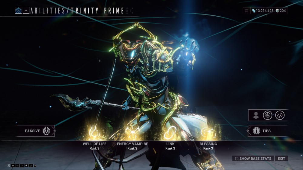 She is one of the original warframes released with the game’s launch. Trinity’s abilities are focused on supporting the squad with healing and energy. However, she has dropped a little bit in usage since now, as there are a lot of alternative methods to get your energy back and heal yourself.