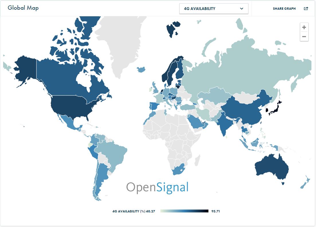T he State of LTE report for November 2016 has been published by OpenSignal. The report gives us a detailed idea about the 4G LTE’s worldwide reach.LTE – a standard for high-bandwidth wireless communication on mobile devices – is considered as a commercially deployed form of the 4th generation wireless mobile communications technology. However, it doesn’t enable even half of the peak data speed – 1Gbit/s for stationary users and 100 Mbit/s for mobile users – technically specified for the 4G technology.