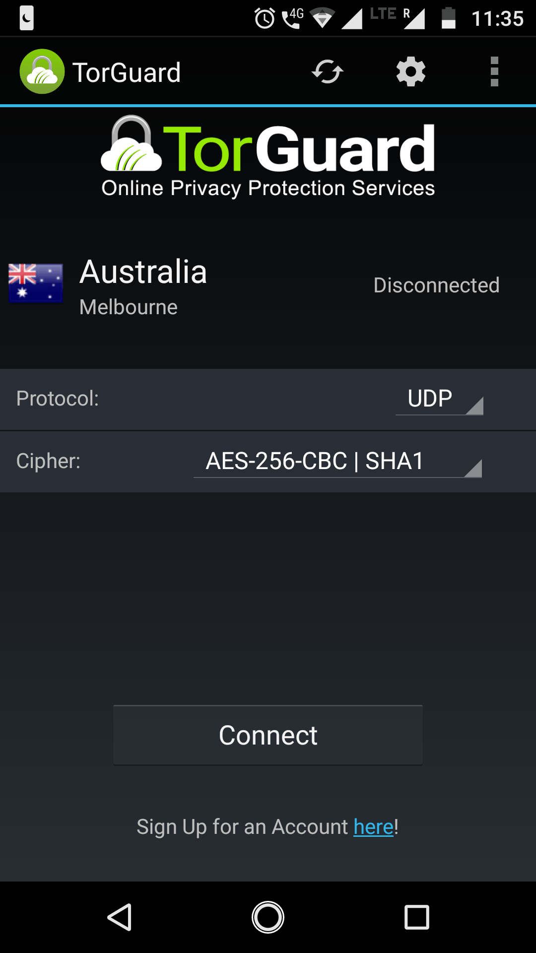 TorGuard’s Android app is no different than its Windows siblings when it comes to basic working. You have to tap the Connect button after which the app asks for the temporary user credentials. The app also supports the OpenVPN protocol and allows you choose between different encryption modes.