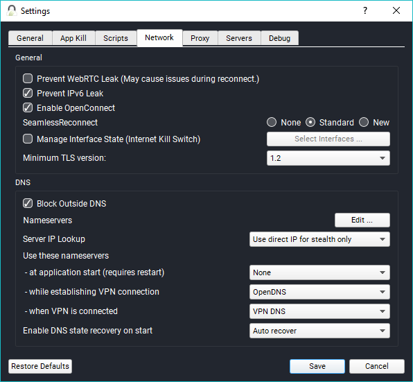 Under the Network tab, you can edit the DNS settings provided by the app. If you want, you can choose third-party DNS instead of the one provided by TorGuard. It’s not advised as it may expose your identity. Further, there is a checkbox to enable WebRTC leak, IPv6 leak, etc.