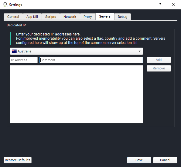 For further anonymity, your VPN traffic can also be routed via proxy servers maintained by TorGuard, or if you want it to pass through a custom proxy. Under the Servers tab, users can maintain the list of the dedicated IP addresses they have brought from TorGuard.