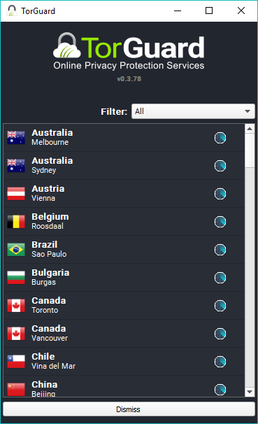 While selecting the TorGuard VPN server, it’s possible to narrow down the server list to cities within countries. But, unlike other VPN apps, TorGuard doesn’t offer a search bar to find VPN servers quickly.