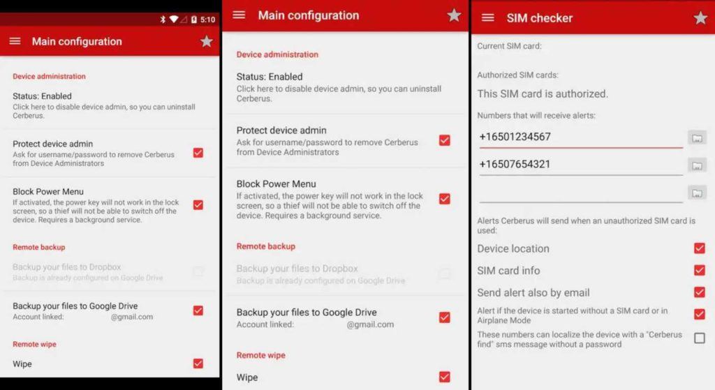 Cerberus provides impressive remote administration features that can help you recover your stolen Android device. You can remotely control your device through a website or SMS from another phone. It can help you to locate Android phone, lock it with a code, start a loud alarm, or even take a picture of the thief. The app will send email/SMS alerts if the SIM card is changed. Moreover, you can hide the app from the app drawer so that the thief cannot disable or uninstall the app.