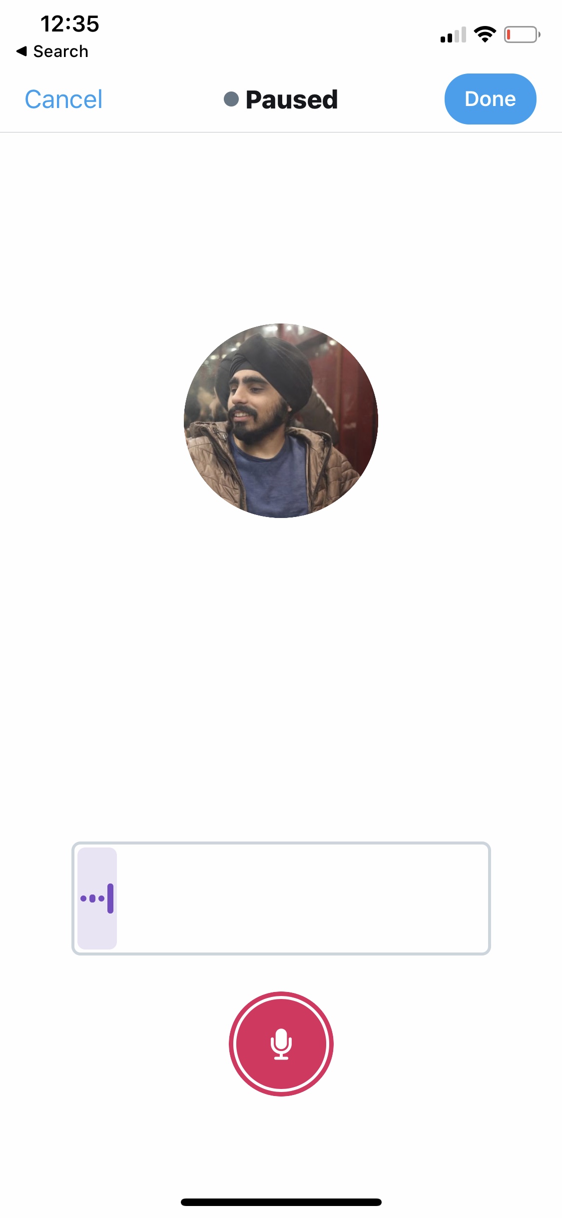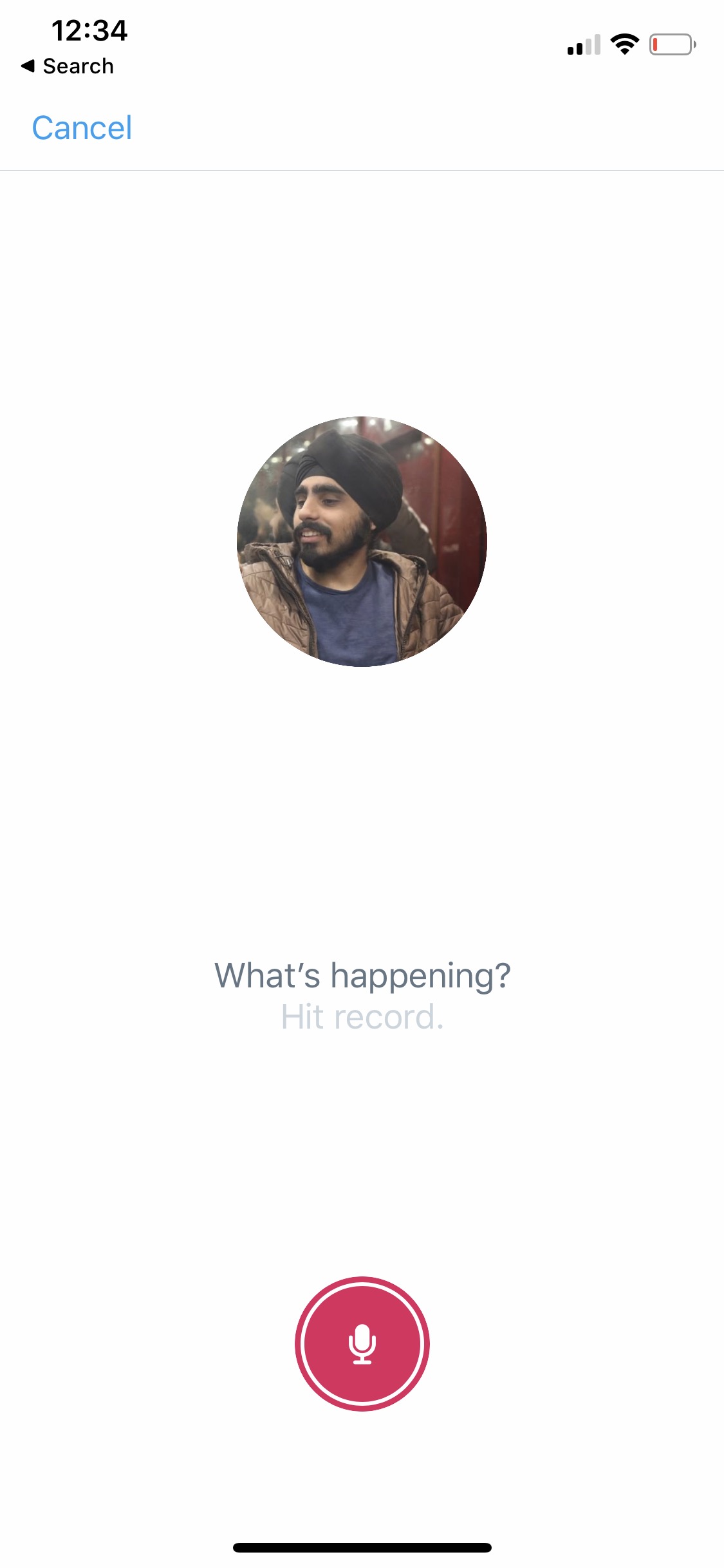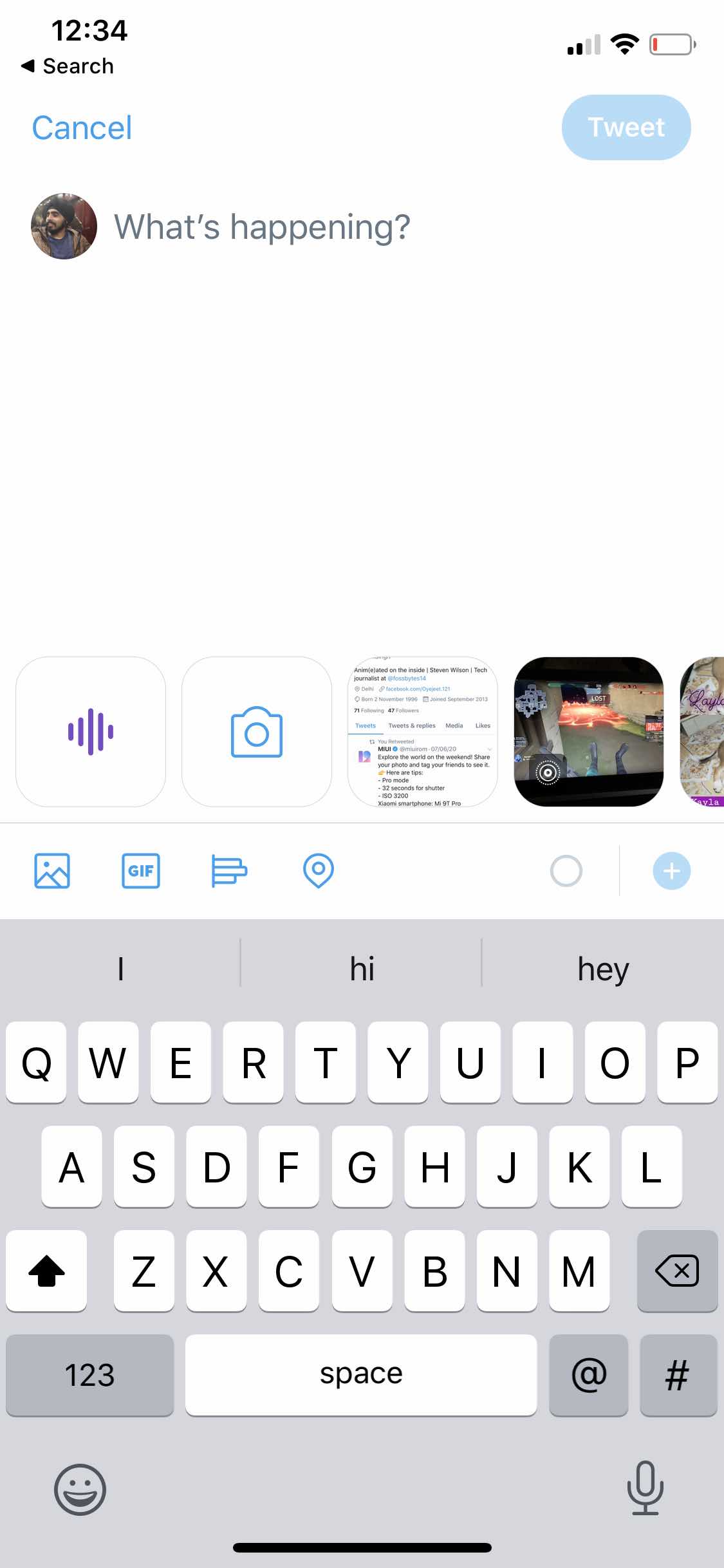Hold the mic button and record your voice tweet.