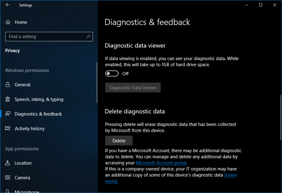 There is a new app for Windows 10 called Diagnostic Data Viewer that allows users to see what data is uploaded to Microsoft servers. You can turn on diagnostic data viewer by visiting Settings > Privacy > Diagnostics & feedback . There, enable the toggle button under Diagnostic data viewer. Then click the button below it.