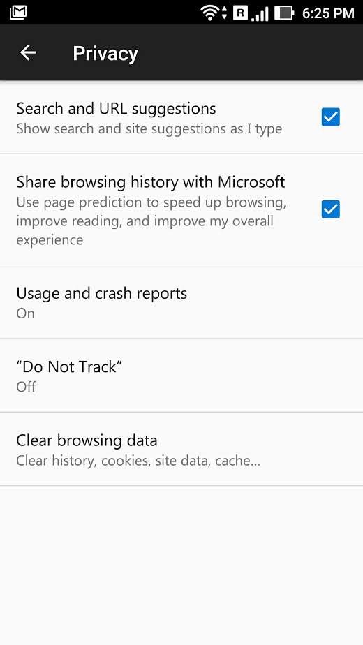 An option called “ Share browsing history with Microsoft ” should be enabled in Settings > Privacy .