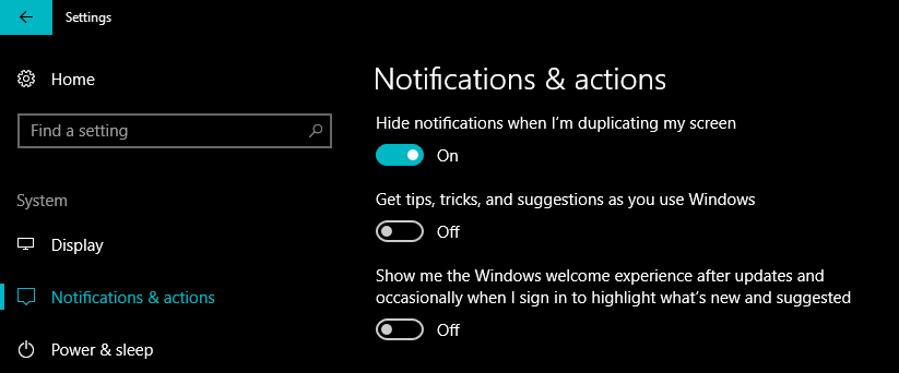 If you aren’t satisfied by the ‘quiet hours’ option, you have the freedom to disable Windows 10 notifications altogether. You can do so by visiting Notifications & actions.