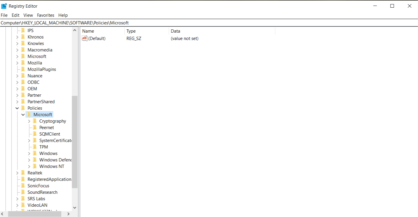 HKEY_LOCAL_MACHINE\SOFTWARE\Policies\Microsoft